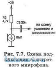 привет. вообщем собрал такой маленький и вроде простенький микрофонный усилитель. Казалось что не может быть проблем, но вот так и нет. на выходе ничего нет, а напряжения в указаных точках на схеме в половину примерно. Изменение номинала сопротивления R1 ничего не даёт. что странно это то что подключив батарейку на 1.5 в паралельно микрофону в наушнике появляется сигнал, к тому же в полне нормальный. я посидел и подумал в чем может быть проблема и пришёл к 2 версиям: либо в номиналах резисторов ошибка где-то, либо надо сделать делитель напряжения на базе первого транзистора ( это при условии что пп правильная). но оба варианта кажутся мне так себе, по этому хочу спросить ваше мнение