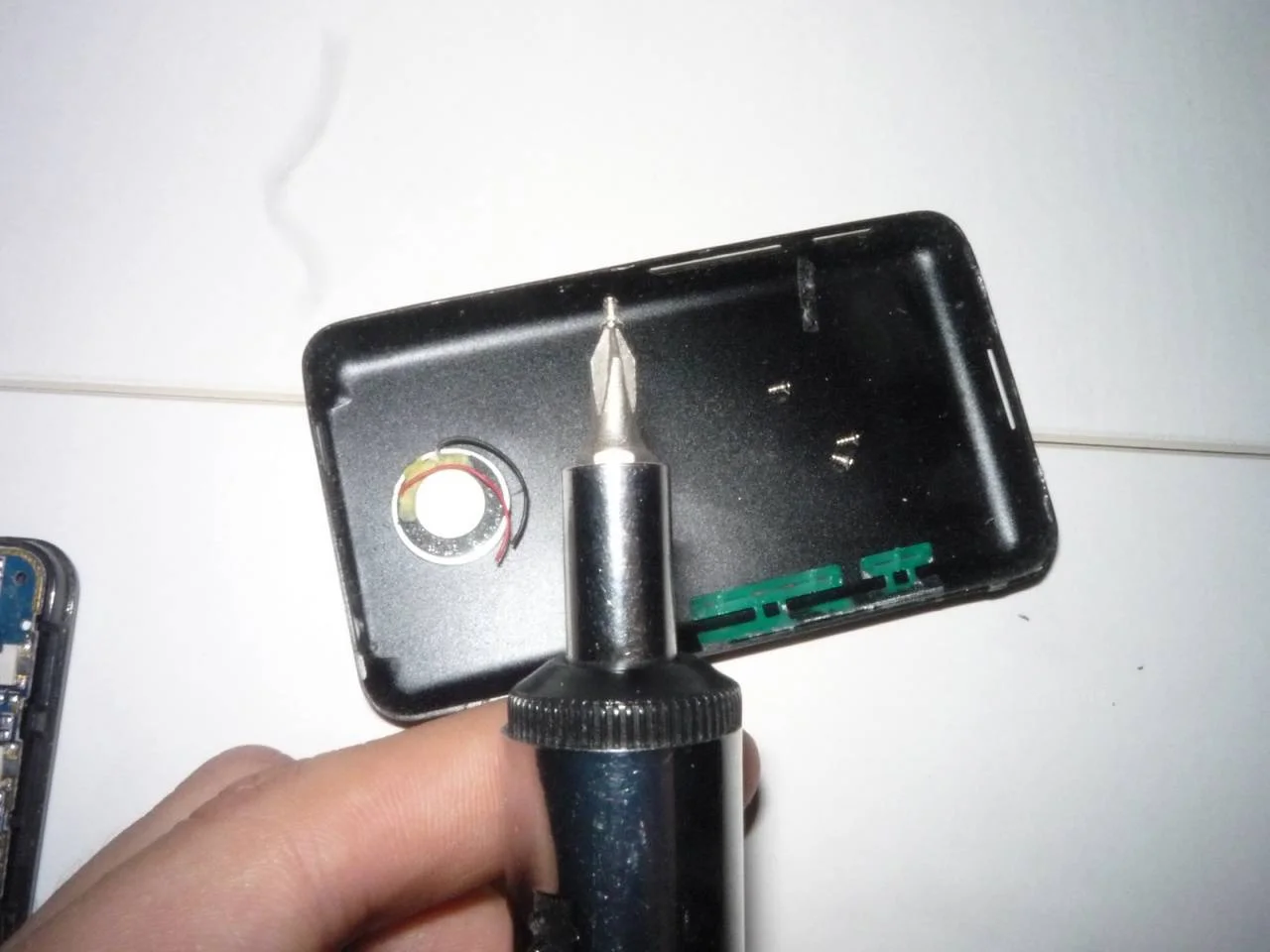 Теперь можно без всяких помех рассмотреть и починить разъем для наушников.