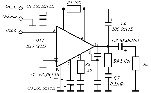на схеме динамик обозначен как Rн, резисторы R2 и R3 указаны в Омах
