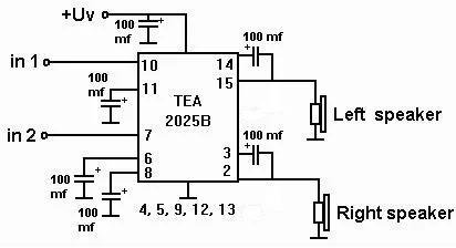 TEA2025 модернизированная схема включения, мощность у нее примерно равная с 2822. Питание тоже одинаковое, но есть ряд небольших замечаний, аппетит у нее чуть по выше чем у 2822 (250мА против 200мА у 2822) но это не точные цифры, давно это было, уже не помню, так же мне она не понравилась тем что у нее с НЧ немного напряжно, 2822 выдает бас по лучше. но это всё как говориться на вкус и цвет.. :)