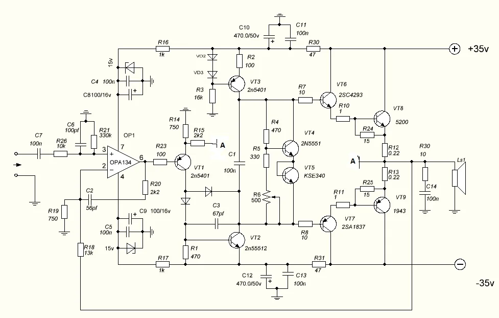 Питание +30/-30 какой был трансик от такого и запитал. В итоге получилось вот что: