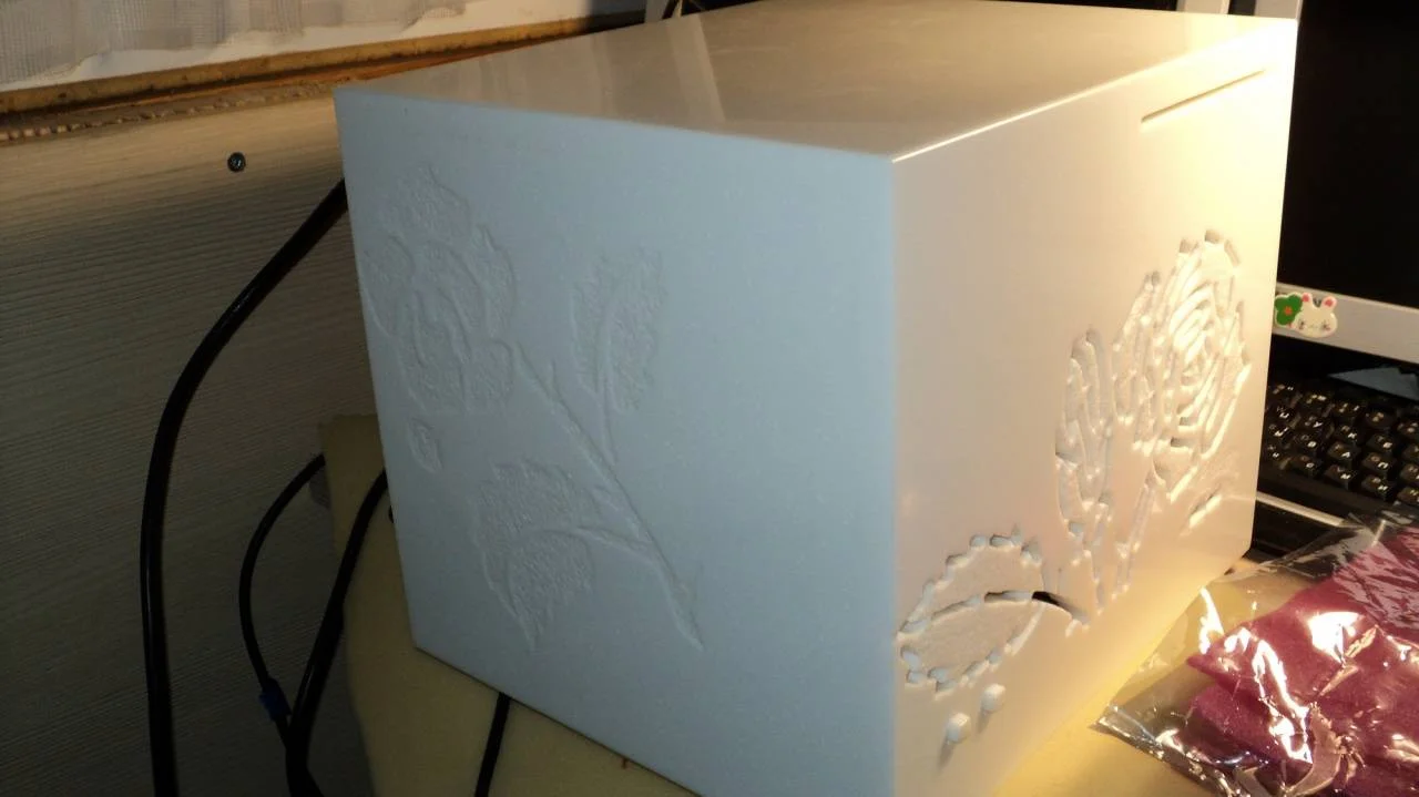 Всё просто. Чуть больше года я выдумывал это. Материал выбрал сразу, но выбор рисунка и способа его исполнения меня затормозил здорово. Первоначально всё было значительно сложнее. Планировалось сделать сквозную прорезку переходящую с прлоскости на плоскость. Рисунок хотел сделать тоньше и по плотности погуще. Т.е. родилось бы это с помощью 3д фрезера. В силу описаных выше причин 3дешник не доступен. Работаю с камнем достаточно долго, но на подобное решился впервые. Сложно. Да, самая главная причина. Это подарок. Появился стимул сделать это скорее. НГ как никак.Сегодня он вручён. У получателя восторг.