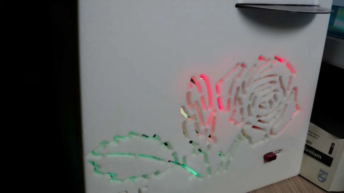 вообще если подсветить белой лампой, то цвет, который ты нанёс, останется, стебель будет зелен, а лепестки красны