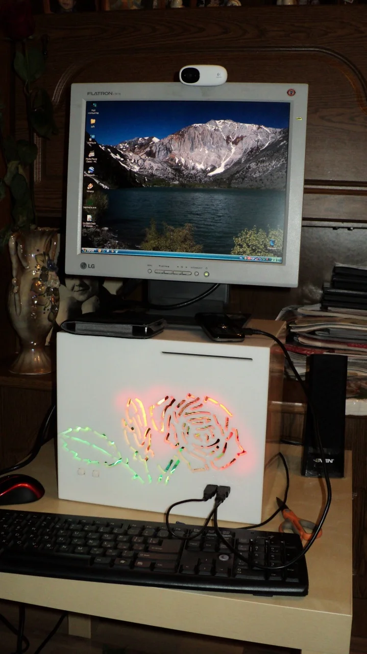 Вот это уже сегодня, добавлены кнопки, тоже из камня, подсветка, всё собрано и работает. Совсем не мумит.Всего два 120 Deepkoolа в корпусе, ничего не греется. Теперь буду высыпаться......tehnosleep