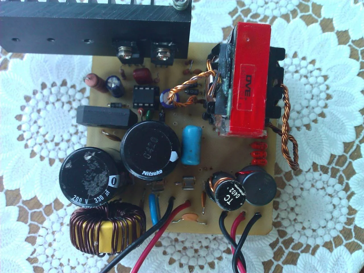 В общем по совету Stvol заменил я транзисторы на большие по вольтажу, нашел только IRF740, заменил микру, заменил диоды на шоттки, поставил термистор NTC 10 Ом. Включаю через лампочку, она часто часто моргает в полную мощность. На выходе между + и - 13вольт. Греется только один транзистор.Диоды остальные прозвонил, все рабочие. Что-то опять не так :(