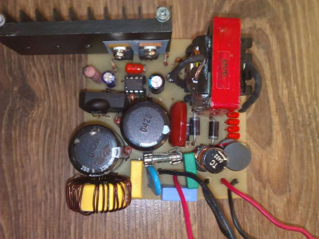 Не вижу на плате: ватистора, термистора, предохранителя, почему керамика в цепи 220В стоит на 50В (на сколько мне видно) да и трансформатор вроде не правильно подключен...