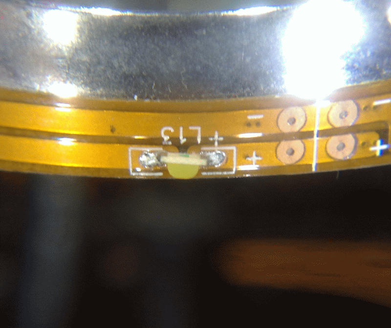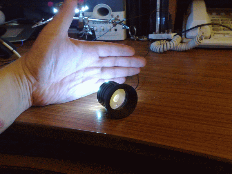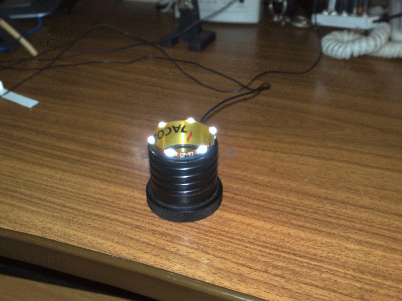 Так ведь мало мне этого. Остался маленький кусочек ленты с шестью светодиодами. И так как у меня есть любимая лупа (объектив от старого диапроектора), то она тоже быстро обзавелась персональным освещением.