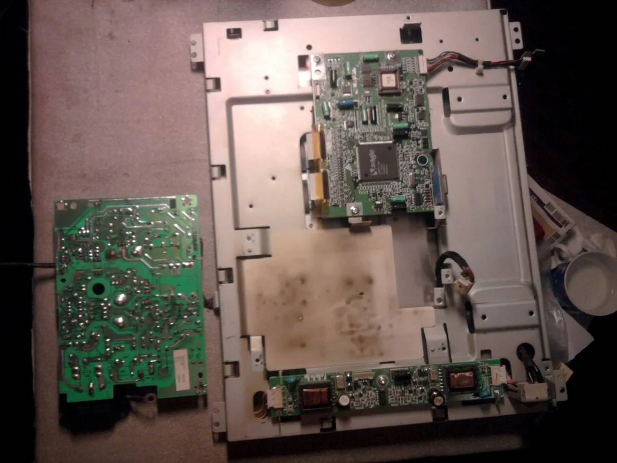 Пришел, включил, он естественно не запустился. Только мигает желтый светодиод, и все. Питание вроде на БП внорме, конденсаторы не вздутые. Но запах их монитора, как из старой микроволновки....:tehnari_ru_1019:
