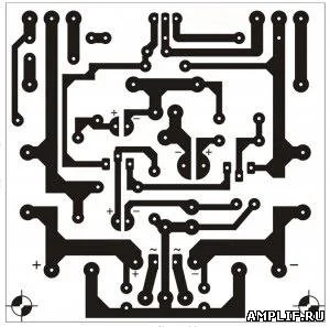 Сижу, значит, дожидаюсь пока пришлют транзисторы для кливеров, гнезда для сабвуфера, руки от безделья чешутся... Решил проверить схему и найденную плату. Взял рассыпуху (транзисторы первые попались кт3107б 2шт, кт815г, кт818г и кт819г - по переходу подошли и решил на них опыты делать), кусочек текстолита, сделал рисунок дорожек и пошел травить.