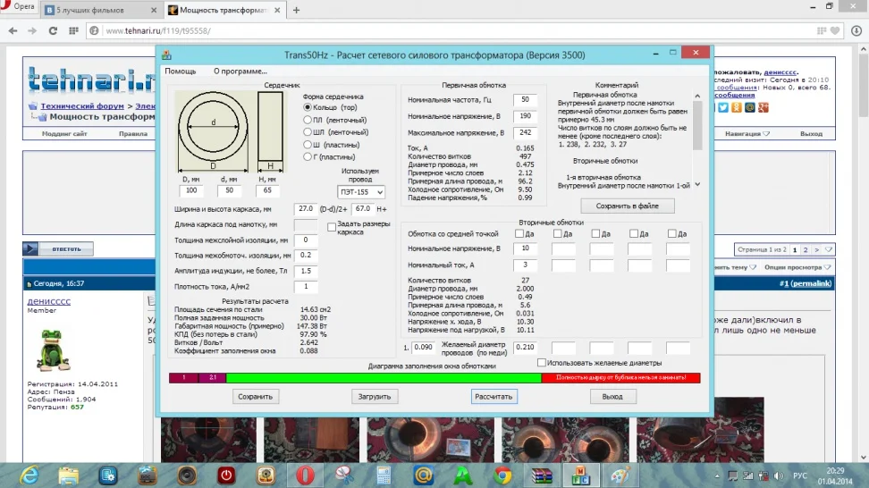 Удачно можно сказать я сходил за покупкой купил 2 тора 200руб за каждый с первичкой(но нужно немного домотать,провод тоже дали)включил в розетку работает через лампочку включал лампочка еле еле горит(это ведь нормально?) но мощность низнает продавец,сказал лишь одно не меньше 500ватт ,помогите посчитать мощность,первичка намотана проводом 0,5мм