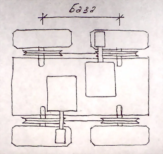 Колеса должны быть как можно биже друг к другу, на рисунке база ... :)