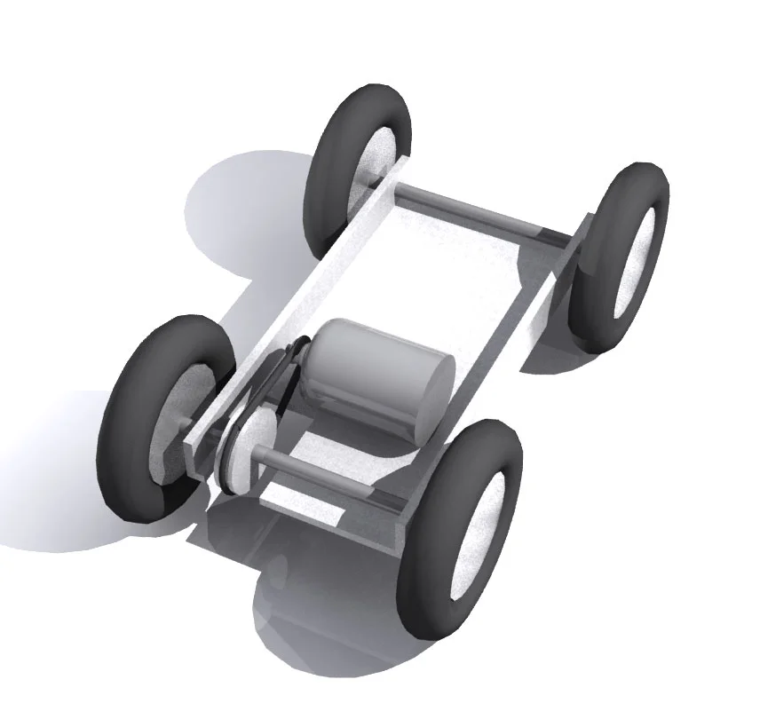 На колёса можно передавать при помощи ремня, это самый простой вариант.