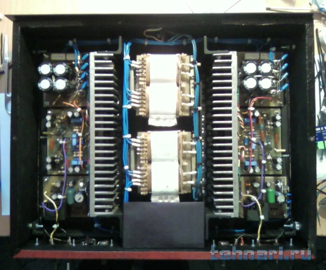 Не забудьте про синфазный трансформатор на выходе, несколько витков кабелем на ферритовом кольце подходящего сечения между выходом УМ и клеммами для подключения АС.