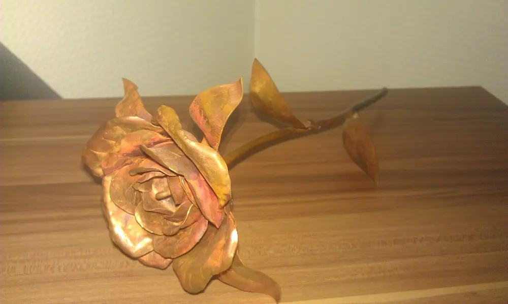 Весь цветочек сделан полностью из меди.
