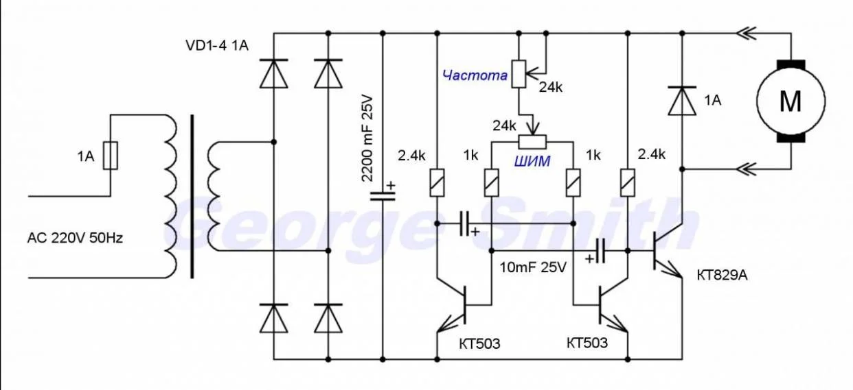 George Smith, я так понял вот эту схему использовать на 24 вольта. С электролитами фильтра и т.д. и трансом это конечно же понятно. И какой регулятор регулирует скорость?
