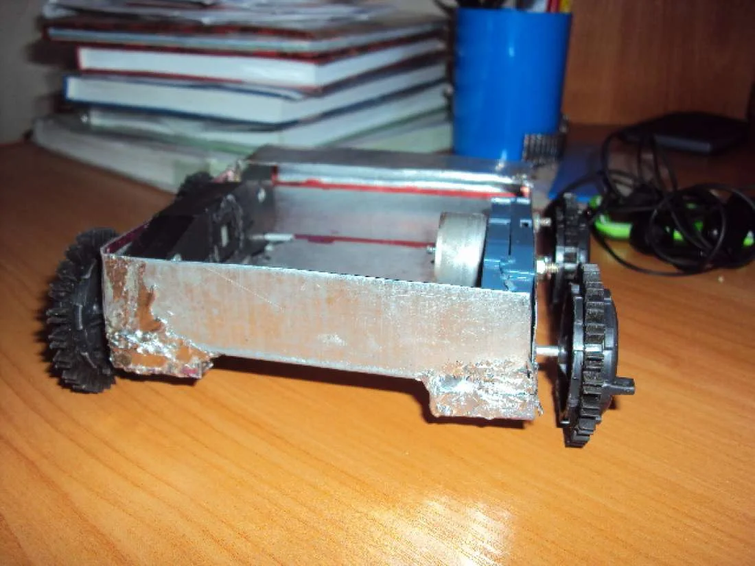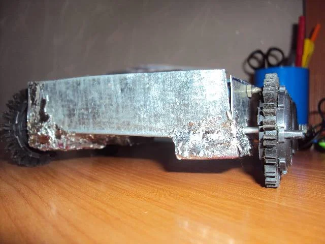 Сверху будет закреплён кусок стеклотексталита,или жести.двигатели тоже как нибудь закрою,и редукторы будут новые и одинаковые потомучто этим уже хана(внутри всё отвалилось).