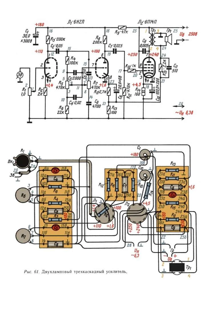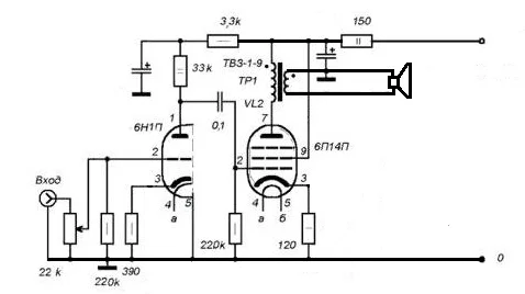 Загляните в книгу "Шаг за шагом. Усилители и радиоузлы" Сворень Р. А. Лучшего помощника в постройке лампового УНЧ чем эта книга, не найти. Я еще в школе по этой книжке усилитель на 6П14П и 6Н2П собирал. Там и принципиальные схемы и монтажные, теории и практик валом. В качестве примера привожу одну схему из книги: