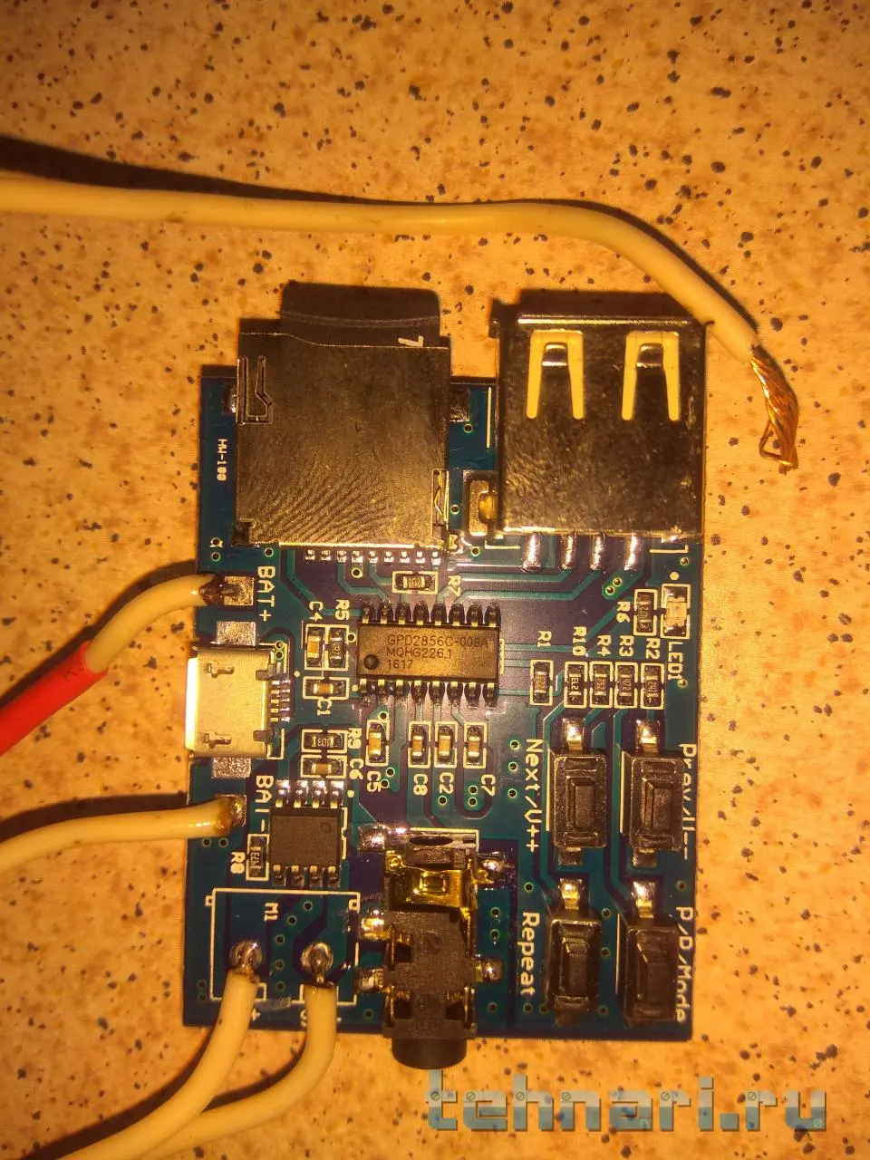 Приветствую гуру. Такая проблемка. Есть mp3 плеер с Алика. Все ничего, но есть НО. При подаче питания на него, плеер начинает сразу воспроизводить музыку и второе, повторяет ее. Вопрос. Как сделать так, чтобы он этого не делал. Т.е. Воспроизводил только после нажатия на кнопку Плей и не повторял музыку. Фотка плеера в скрепке.