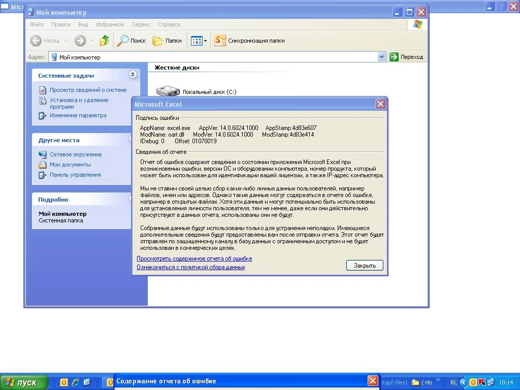 Такая проблема, может кто ни будь знает как её исправить? Смысл в том что есть компьютер подключённый к сети, на нём установленна MS Office 2010. При открытии Excel файла с сетевого ресурса выдаёт такую траблу(файл вложен). Потом перезапускает файл в изменённом виде (таблица ломается, половины данных нет). tehno015