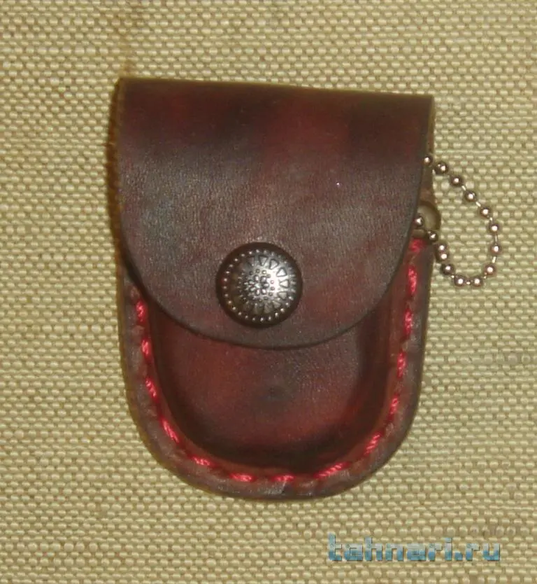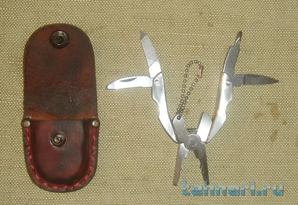 Купил маленькую мультитулу, и сделал на нее чехол. Были обрезки кожи, как раз хватило, кожу состарил. Подарил одному хорошему человеку.