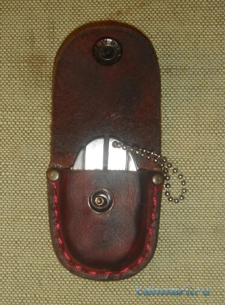 Это маленькая мультитула, где то 60 мм, так что шлевка на ней не уместилась бы, была большая, тоже чехол хороший сшил, но продал, а снимки удалил, сейчас снимки храню.