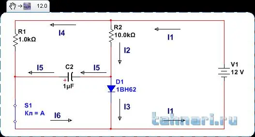 Сопротивление разряженого конденсатора постоянному току минимально или даже мы можем сказать 0. Тааакс осталось разобраться с диодом на нём падение напряжения по условию равно 0,6 вобщем это выглядит так.