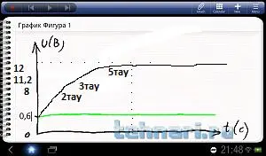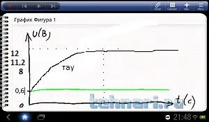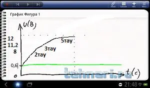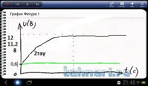 Отложим на оси напряжений точку "12 В" и проведём линию, к которой будет стремиться напряжение.