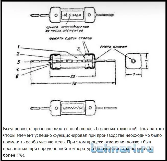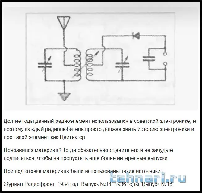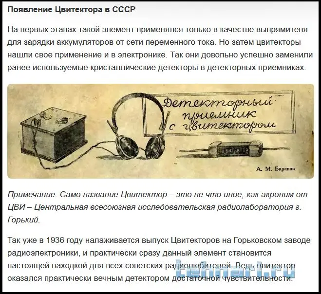 Цвитектор представляет собой круглую или прямоугольного сечения трубочку, внутри которой имеется пара, образуемая медным проводником и слоем окиси на нем.