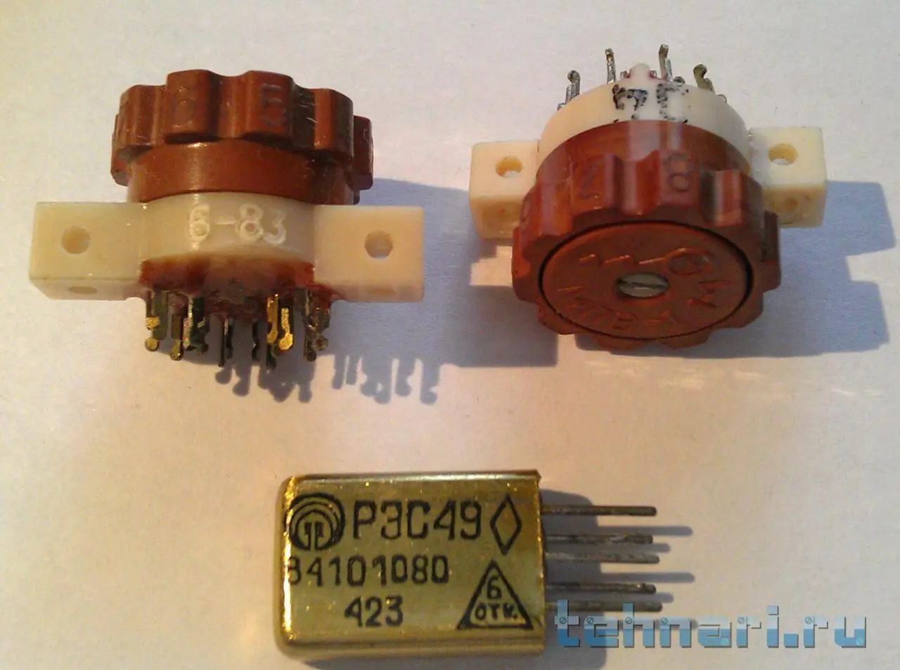 Микропереключатели на 3 и 8 положений. Для оценки размеров - реле РЭС49