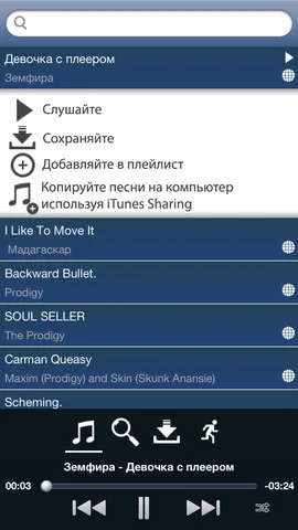 - возможность загрузки песен на Ваш девайс без предварительного добавления в плейлист, для последующего их прослушивания в режиме оффлайн;