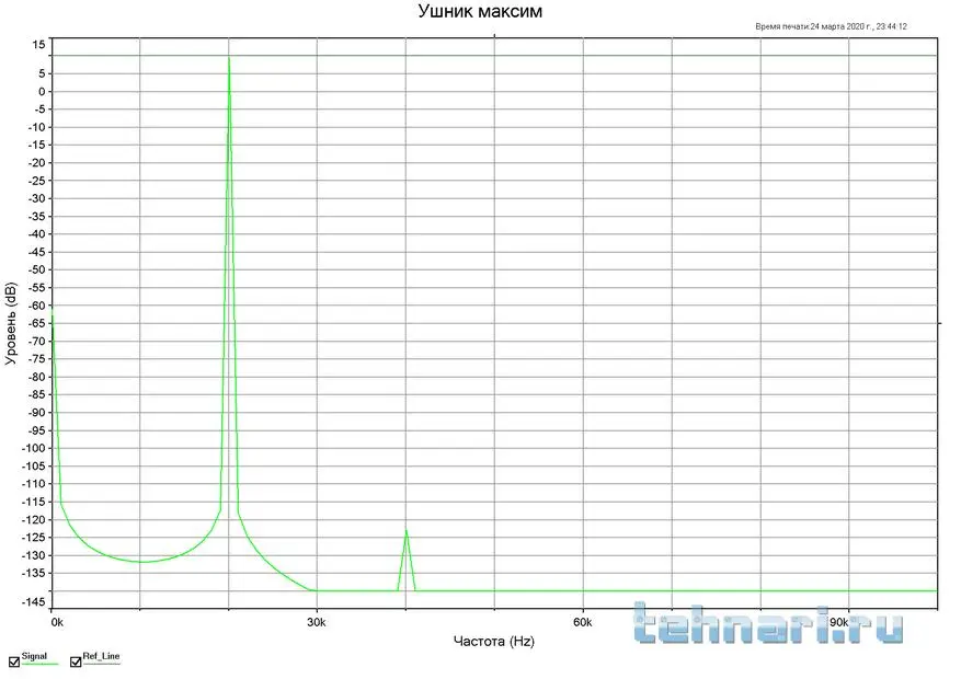 Появилась четко выраженная 3-я гармоника с уровнем минус 118 дБ. Учитывая что уровень основного сигнала плюс 10 дБ, имеем общее отношение гармоники к сигналу минус 128 дБ.