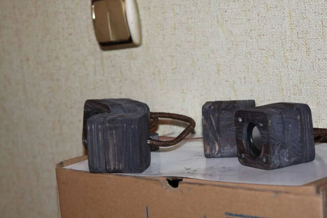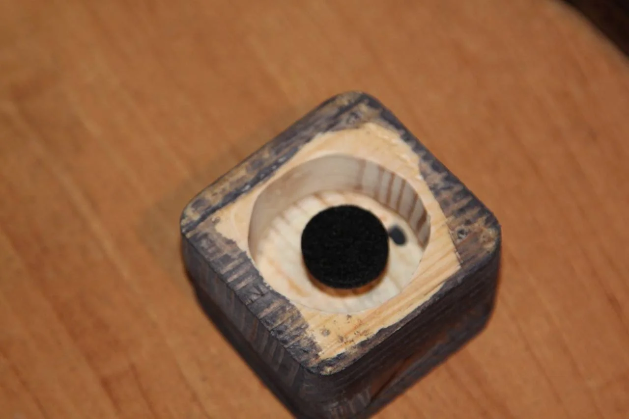 Далее делаем нижнюю подставку. Опять же всё просто. Прямоугольный кусок дерева, с размеченными и далее вырезаными отверстиями под стойки...