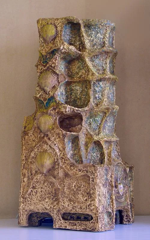 Случайно узнал, какое сегодня число и понял, что слегка не успеваю. До конца света меньше недели, а я ни в одном глазу. Посему решил приступить к покраске изделия. Пока что проклеил все ПВА и прогрунтовал, тоже белилами ПВА. А красить буду масляной краской. Такой грунт сильно тянет масло и поэтому поверхность должна получиться матовой. Поначалу я обдумывал, как бы зашлифовать получающуюся грубоватую фактуру, а теперь, наоборот, боюсь слишком все загладить краской. Уж очень мне понравилась шероховатая фактура, как будто все сделано из обветрившегося песчаника. Ну, посмотрим, что получится, если получится. Так сейчас выглядит загрунтованный корпус: