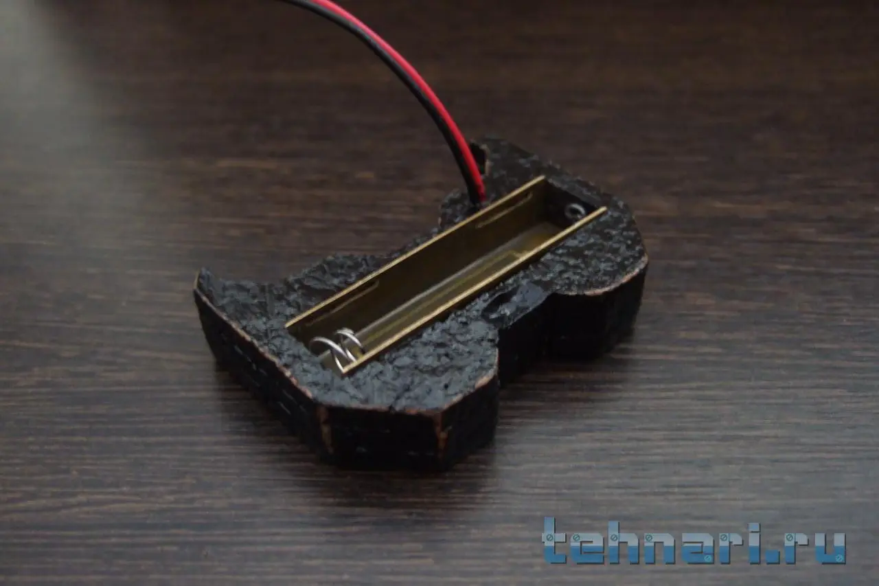 Пытался подобрать плоскую железяку, чтобы приклеить ее на язычок крышки "энергоблока"; чтобы крышка примагничивалась к корпусу. Как на зло, ничего тонкого и магнитящегося не было. Пробовал вырезать из шайбы, из железного профиля, из плюсового контакта ненужной батарейки и из поджимной пластины какой-то клеммы: