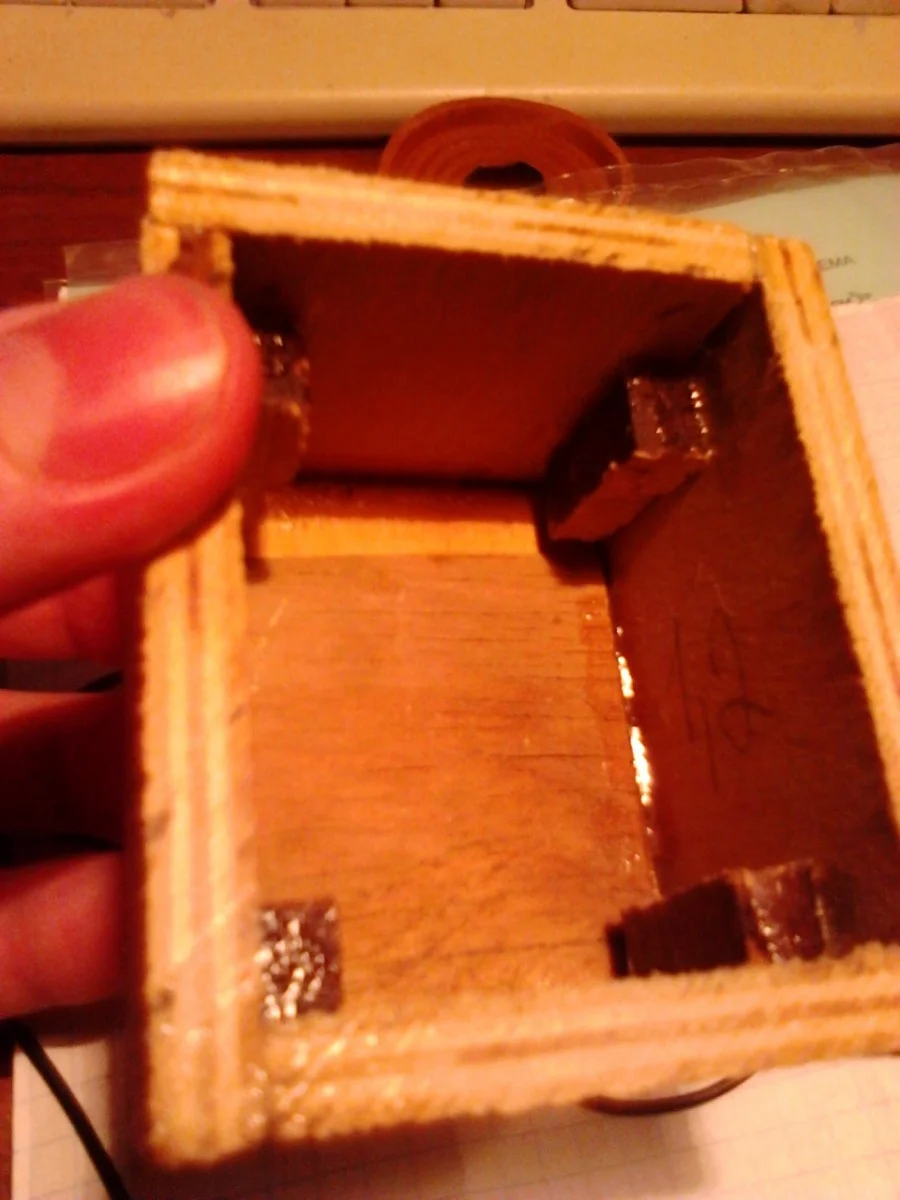 Внутрь кусок синтепона распущеного. Оклеивать стенки чем то смысла нет, если собрать на ПВА и саморезы распорки тоже не нужны. Саморезы брать с широким шагом накрутки, предворительно сверлить тонко под них.