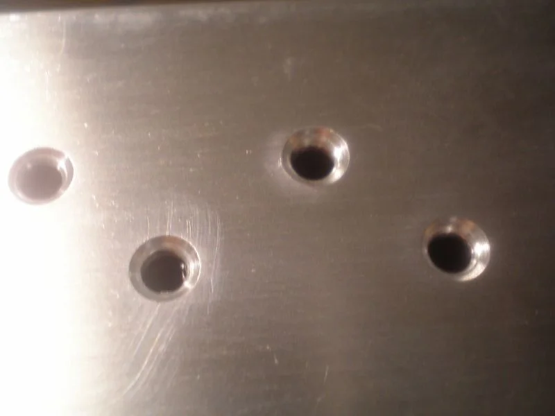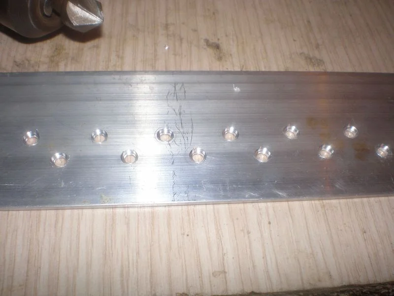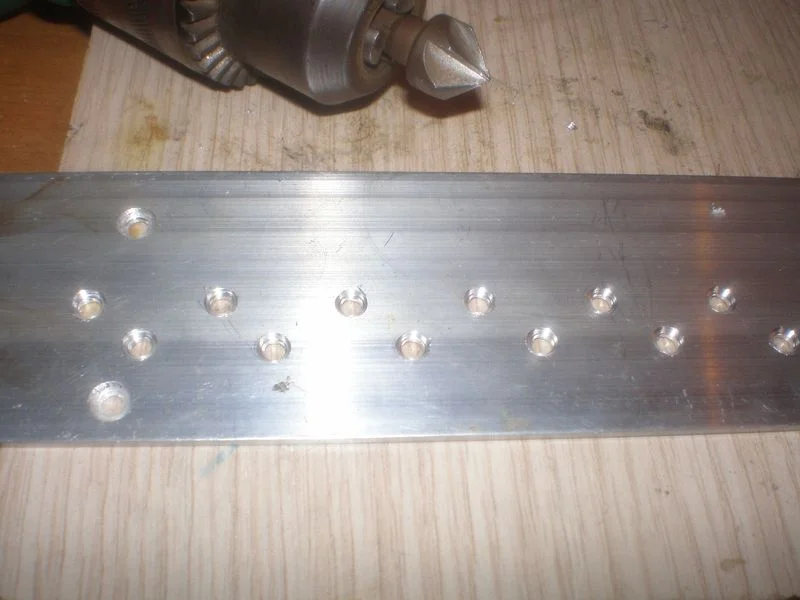 Немного поразмечав, прокернил, и просверлил. Затем придал немного марафета зенкером. (вышкуривать и полировать пока ничего не стал так как поцарапаю 100% пока буду все доводить до ума) Полировкой займусь в конце.