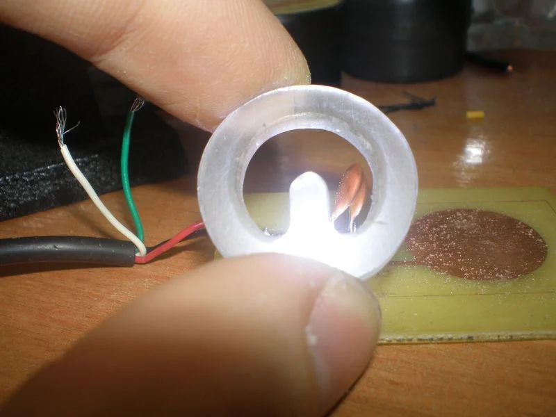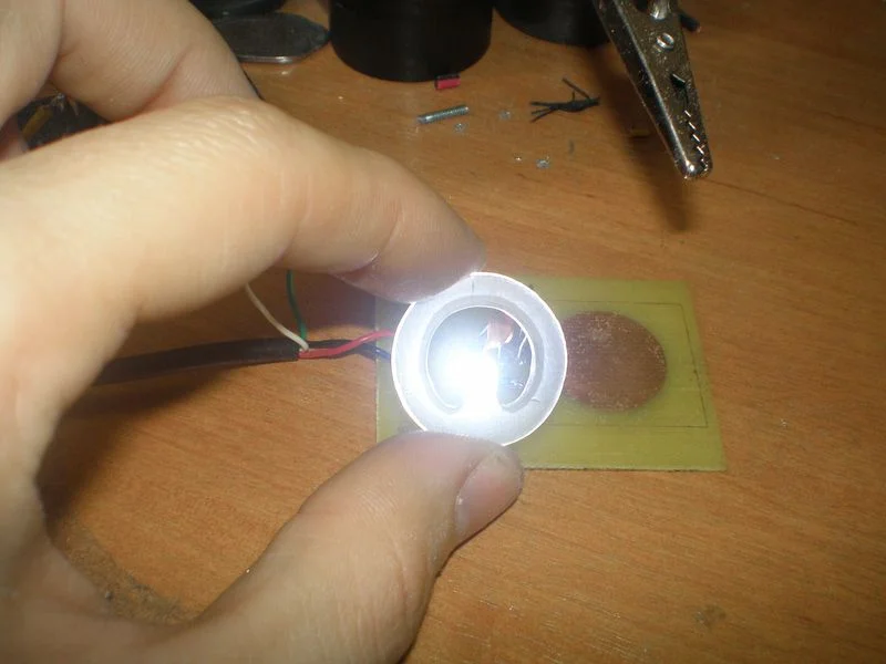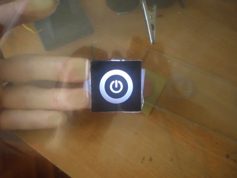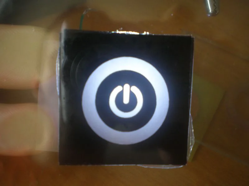 Сначала пытался выпилить кнопку из оргстекла и подсветить - получилось очень кустарненько.
