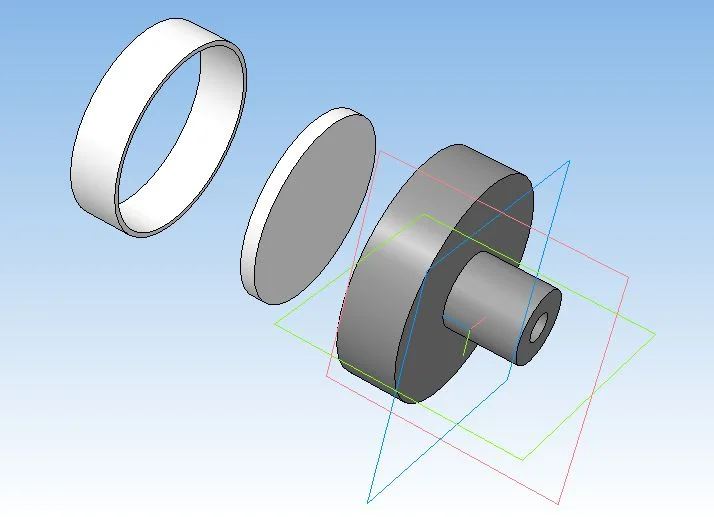 Светлое кольцо и "блин" из оргстекла. "Блин" с лицевой стороны покрашен светонепроницаемым слоем краски. Сзади ручки будет находиться пару диодов которые по оргстеклу перенесут свет на кольцо оргстекла внутри ручки. Чето как то замудрено объяснил - надеюсь поймете :)