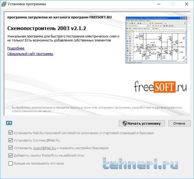 Это freesoft просто взял оригинальные файлы программы, перепаковал архив в свой EXEшник, добавив туда mail.ru, а сама программа "Схемопостроитель 2003" как была не пролеченная, такой и осталась. :)