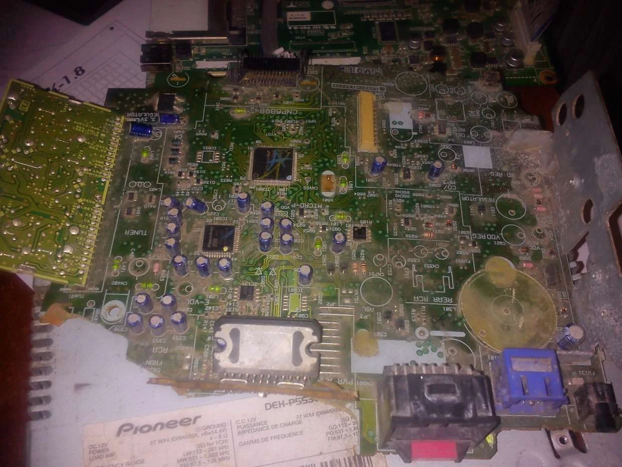 И еще немного: (правда еще по зиме) разбитую авто магнитолу pioneer DEH-P5530MP, и разбитый телевизор LG 42LD420... пытался востановить плату от телека, ну по крайней мере включилась а там хз)))
