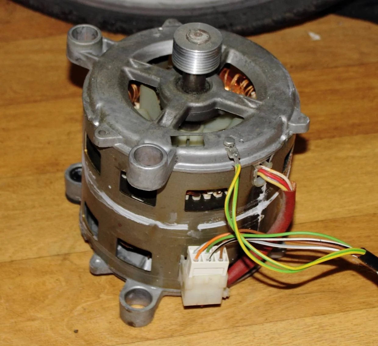 На лестницу выволокли стиралку, убитую. Снял с неё мотор, водокачку, какую-то непонятную коричневую фиговину, конденсатор и электроклапан(был на входе в машину).