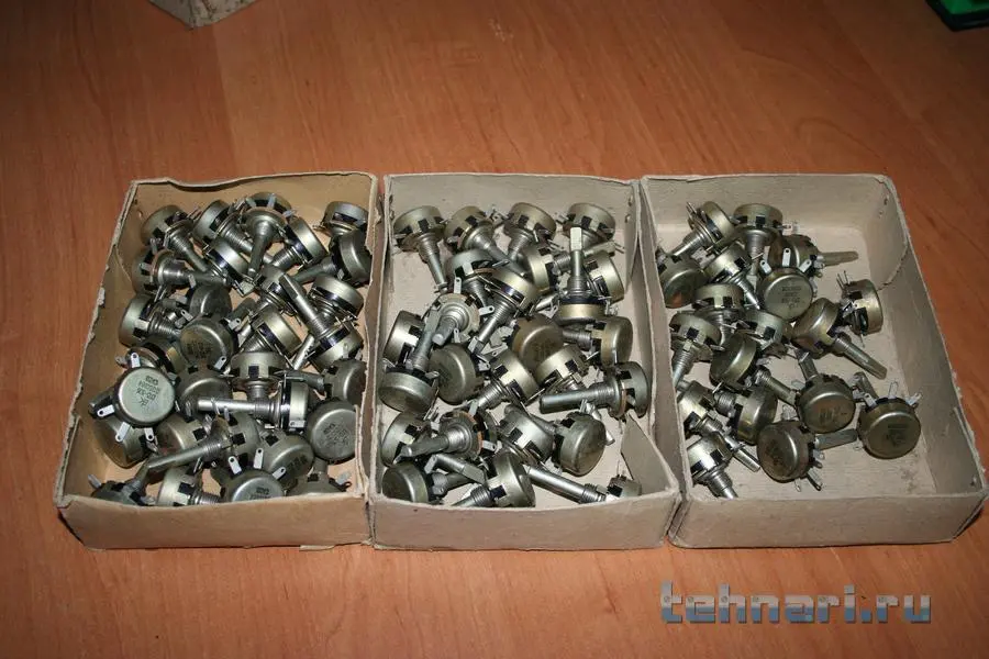Линейные сдвоенные - на темброблоки, логарифмические с отводами - на громкость, сдвоенные соосные, не знаю ещё куда. Они, блин, линейные. Короче, в аудиоподелки сколько-то их полюбому уйдёт. В таком количестве пришлось их забрать потому, что их уже в мусорный бак волокли. Этого допустить я не смог.