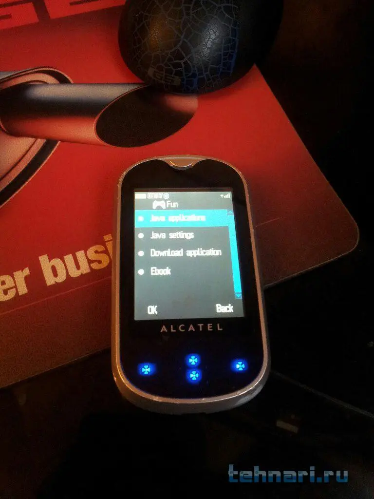 И на закуску мобильник Алкатель, сенсорный, но очень странный. Детский, что-ли...