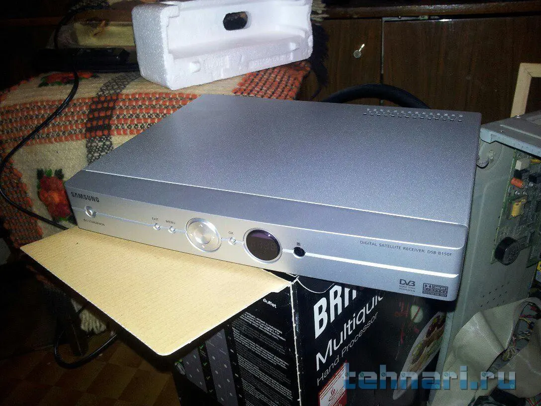 Спутниковый приемник, новый, но настолько древний, что и вход в него с тарелки и выход на Тв только скарт.