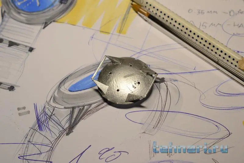 Упрощая форму ушек, прихожу к более агрессивному внешнему виду. Конечно, со сферическием стеклом будут проблемы. кривизну корпуса придется подстраивать под кривизну стекла, которое удасться найти в продаже.