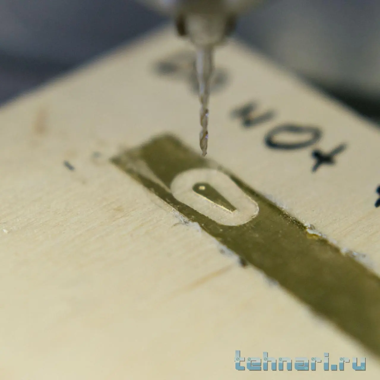 Попытался сделать стрелку из латуни... в принципе, получилось, только сверло 1.1 нужно, а я 1.2 просверлил.