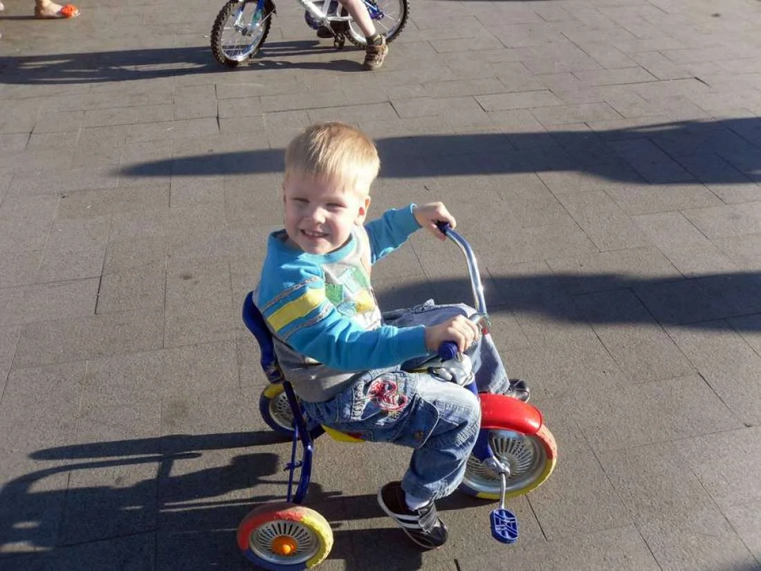 Странно что не на самолетике, не находишь?Это мой сынуля..