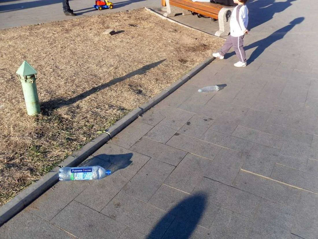 А вот у нас такого явления очень мало... чаще стараются доносить до урн, где они есть. Вдали от центра могут и под ноги кинуть.Вот, что меня поразило больше всего, урны стоят на каждом шагу, но видно бросить бутылку на дорожку - это настоящий кайф, видимо после этого человек поднимет свое самолюбие, свиньи- больше нечего сказать...