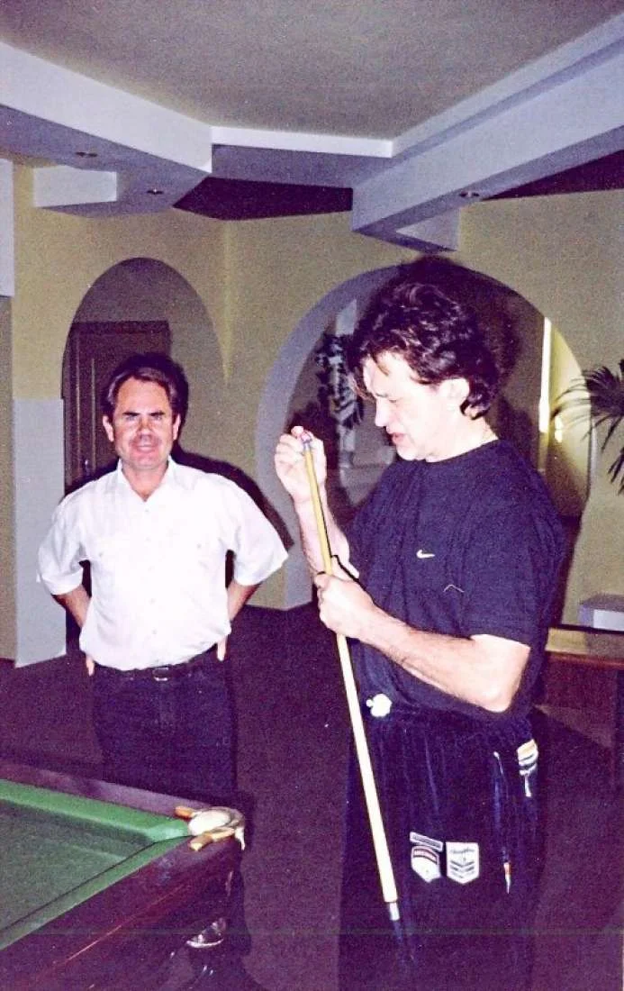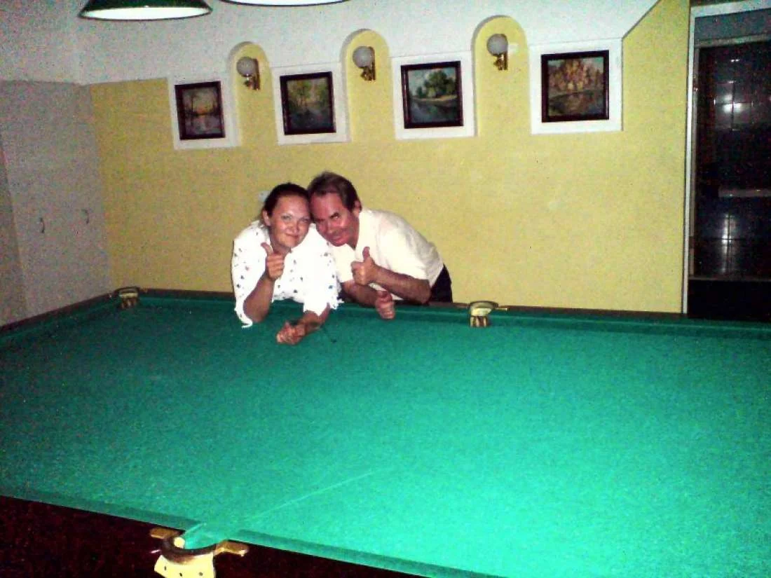 Моя Татьяна Петровна и братишка прикалываются на том же бильярдном столе ... :)