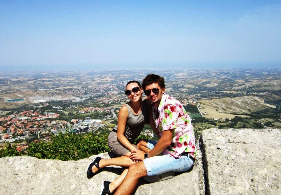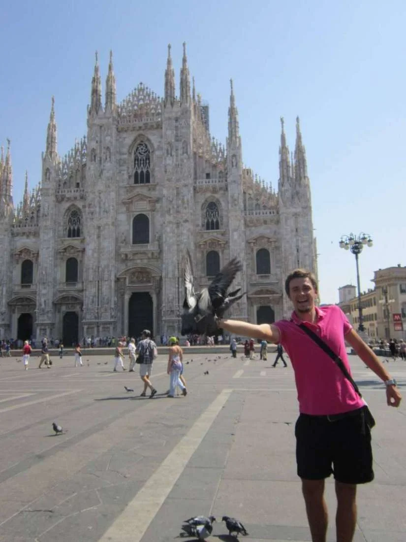 На первом фото я с девушкой в Сан Марино.На втором,в Милане,кормлю голубей.
